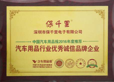 保千里榮獲“汽車用品行業(yè)優(yōu)秀誠信品牌企業(yè)”稱號