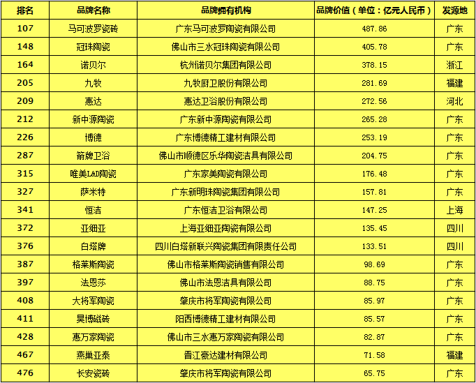 由世界品牌實驗室(World Brand Lab)主辦的(第十六屆)“世界品牌大會”于6月26日在北京舉行,會上發布了2019年《中國500最具價值品牌》分析報告。在2019年《中國500最具價值品牌》排行榜中,建材行業有41個品牌,其中陶瓷衛浴行業有20個品牌進入榜單。