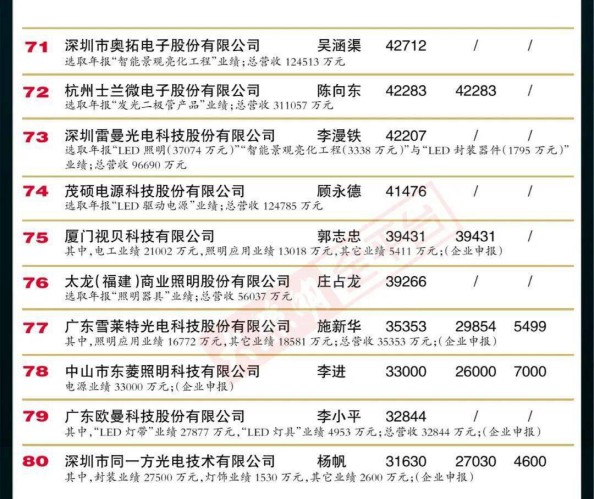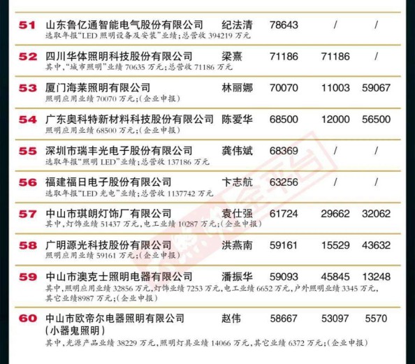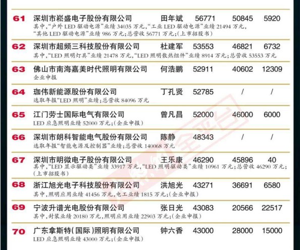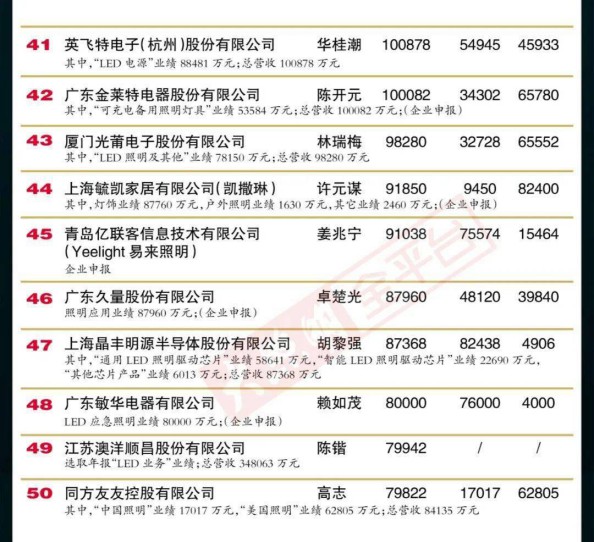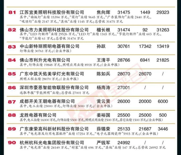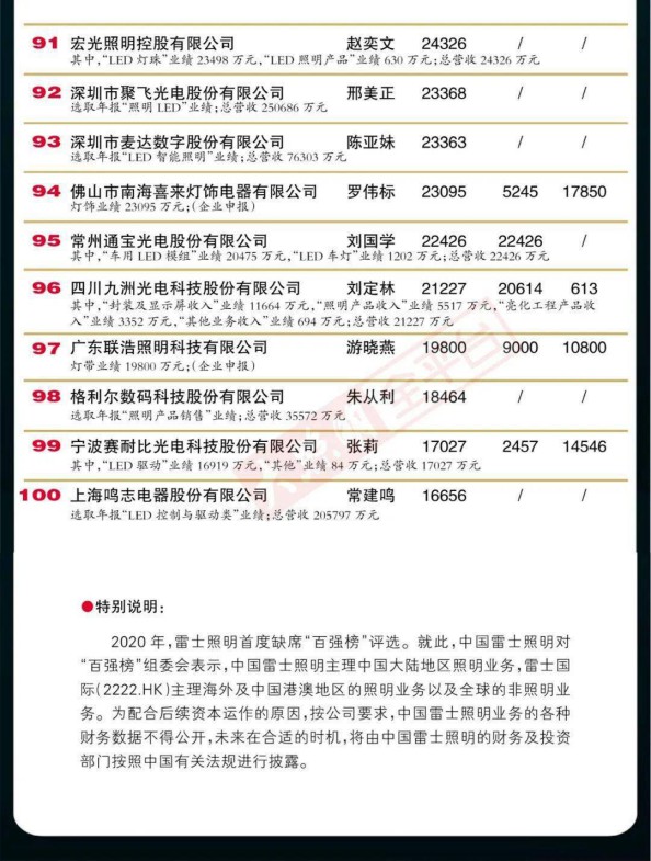 “2019中國LED照明燈飾行業100強”完整榜單: