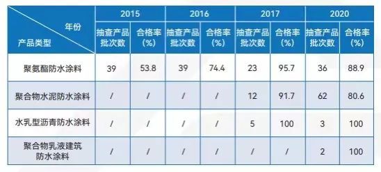 2015-2020年建筑防水涂料產(chǎn)品抽查統(tǒng)計(jì)表