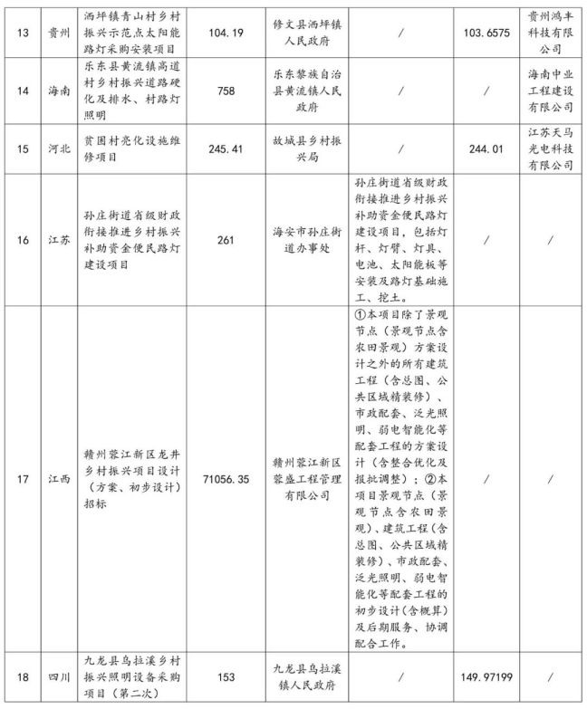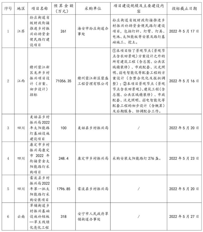 小編從公開信息中統(tǒng)計到,2022年1-5月全國至少有13個地區(qū)發(fā)布了鄉(xiāng)村振興照明工程項目,合計金額約8.9億。主要分布在安徽、北京、福建、甘肅、廣東、廣西、貴州、海南、河北、江蘇、江西、四川、云南等省份。