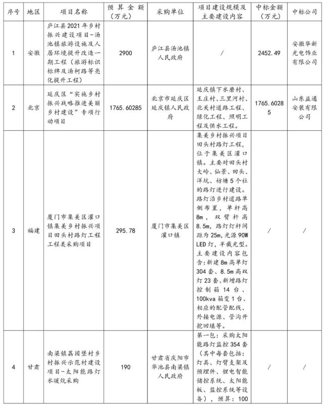 鄉(xiāng)村要振興,產(chǎn)業(yè)必振興。2022年截止目前為止,覆蓋全國各地的美麗鄉(xiāng)村振興領(lǐng)域的照明工程項目源源不斷。下面中國照明網(wǎng)根據(jù)相關(guān)信息對國內(nèi)各省市2022年1-5月鄉(xiāng)村振興照明工程相關(guān)項目進(jìn)行匯總。