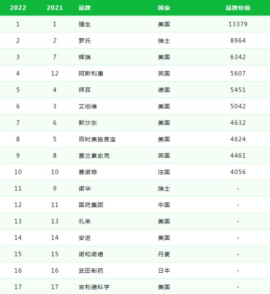另外一家增長較大的公司是來自中國的廣藥集團,自 2020 年以來,廣藥集團品牌價值實現了 147% 的增長,今年的品牌價值增長率是 42%,達到了 21 億美元,Brand Finance 認為其全球供應鏈和數字化管理云平臺保證了醫療服務的高效交付,為應對新冠大流行做出了積極的貢獻。