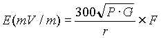 式中: P──發射機功率,KW; G──相對于半波偶極子的天線增益,DB; r──被測點與發射天線的距離,Km; F(θ)──天線垂直面方向性函數(視天線型式和層數而異)。 A.2.5.4 雷達等微波功率密度S計算公式: