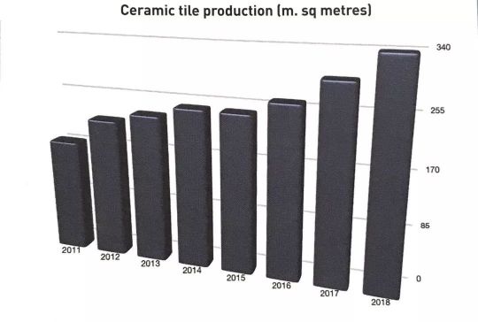 由于近幾年許多的瓷磚生產商以及行業新生產商都在增加產能,埃及已成為非洲,中東以及北非地區最大的瓷磚生產國之一。且自2007年到2014年,埃及瓷磚產能一直呈增長趨勢(僅由于政治原因,在2011年出現過短暫放緩), 在整個中東和北非地區,埃及的產能增長位居第二, 伊朗第一。