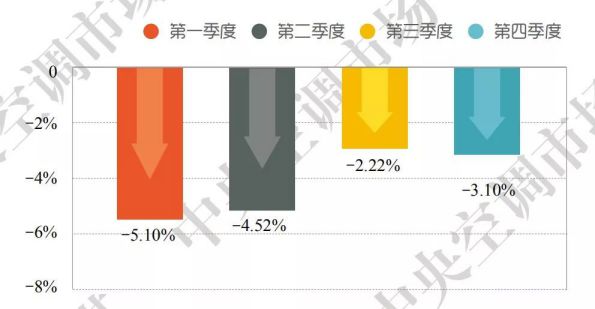 第四季度與前三季度的市場走勢仍保持一致,但是從市場增長率看,第四季度行業市場下滑3.1%。原因在于,首先,第四季度是廠家年底沖刺業績的最后階段,出貨量增加,進一步減緩了市場的下滑幅度。其次,諸多中央空調廠家借助“雙十一”重要互聯網節點,推出大幅度優惠讓利政策,既削減了渠道庫存,又進一步提升了企業線上銷售業績。不過,這種提前透支市場的方式,在今后的一段時間內將對行業造成持續性影響。